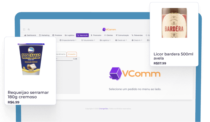 Nossa solução: Construímos a plataforma completa de e-commerce da VComm. Uma arquitetura robusta capaz de lidar com a complexidade de SKUs de mercado e a velocidade de entrega que o setor exige.